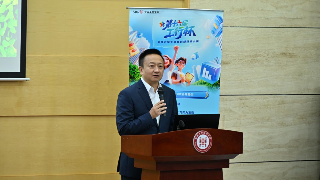 中国工商银行云南省分行金融科技部副总经理王斌在致辞中指出,此次宣讲会的顺利举办,离不开云南大学经济学院和中国工商银行云南省分行对金融科技教育与实践的高度重视。中国工商银行云南省分行长期在金融科技领域深耕,积累了丰富的前沿实践经验,此次与云南大学经济学院合作,为高校与企业联合培育金融科技人才提供了宝贵契机。他介绍,大赛不仅为学生提供了展示才华的舞台,更是连接学术与产业、理论与实践的重要桥梁,工行将为参赛学生提供全方位的支持与指导,包括赛事解读、备赛建议等,助力学生提升实践能力。