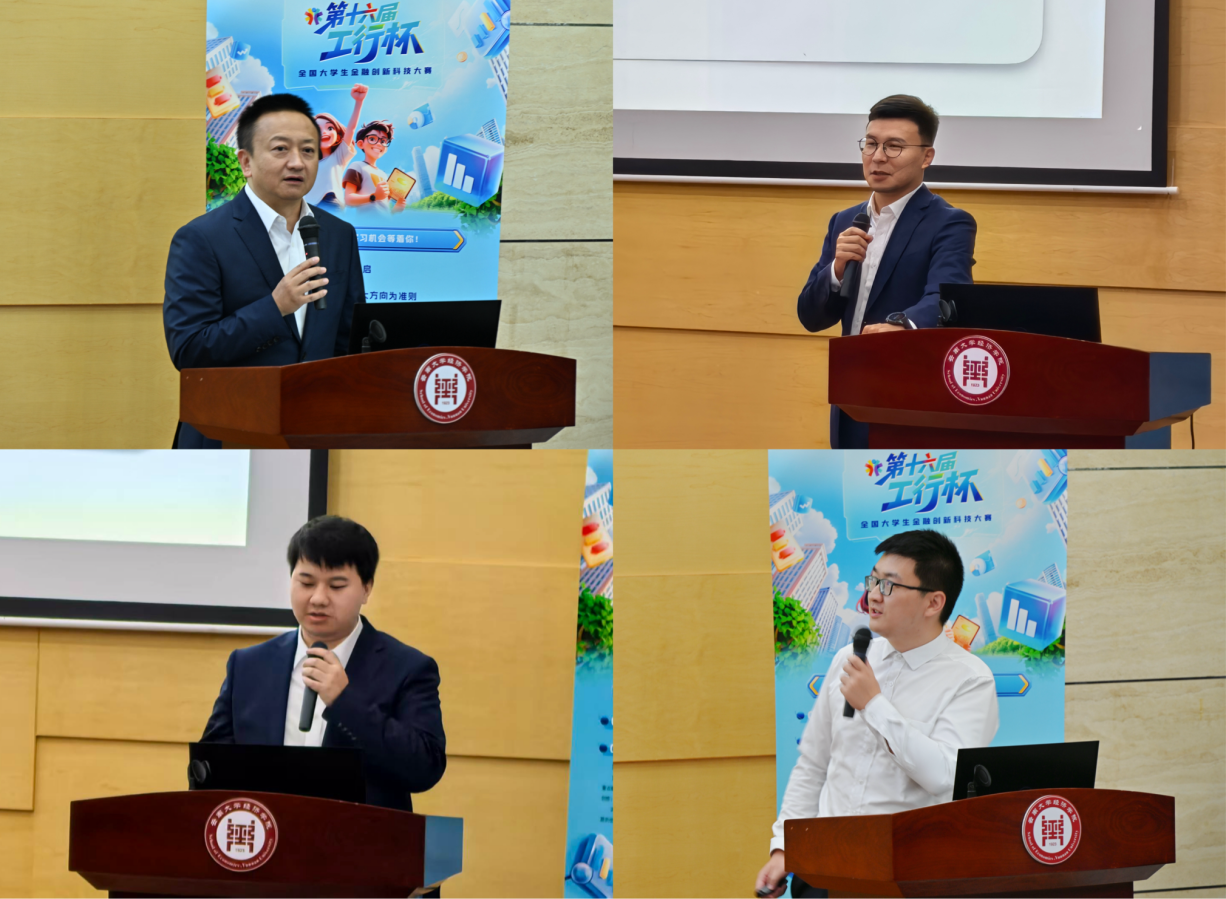 随后,王斌副总经理、杨灿主管、马昌源和薛凯文等分别围绕大赛章程、赛题设置、赛程安排、评审标准及奖项设置等内容进行详细解读,并分享实用备赛建议。在互动答疑环节,同学们踊跃提问,就组队方式、选题方向、技术实现等问题与嘉宾深入交流,现场气氛热烈。