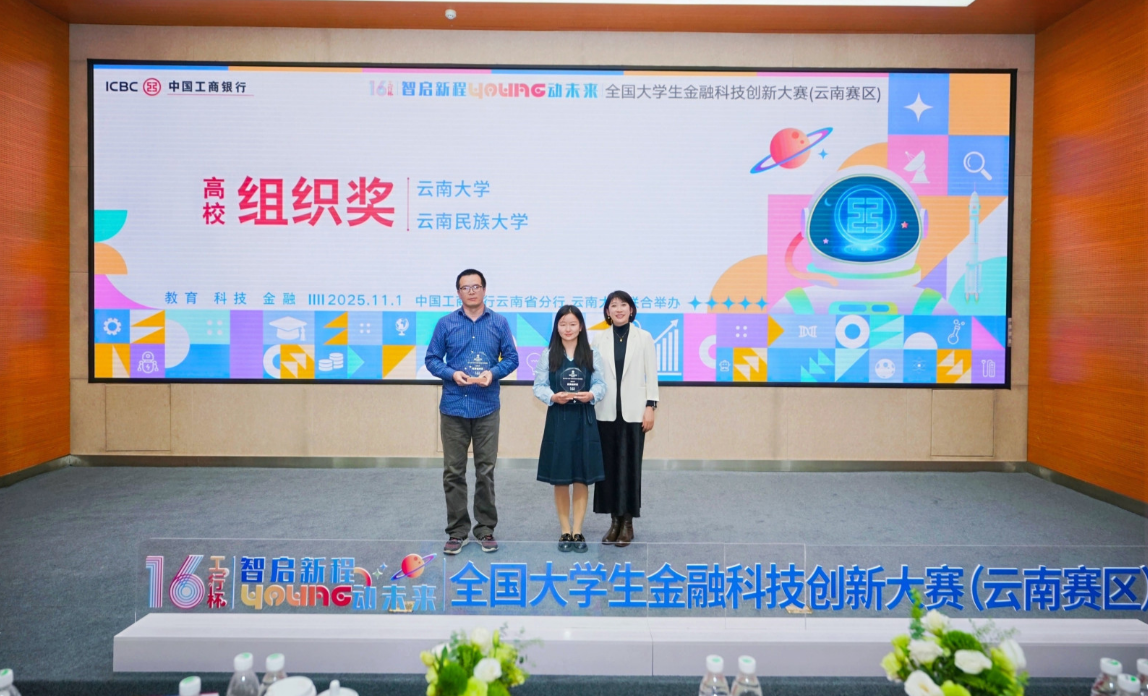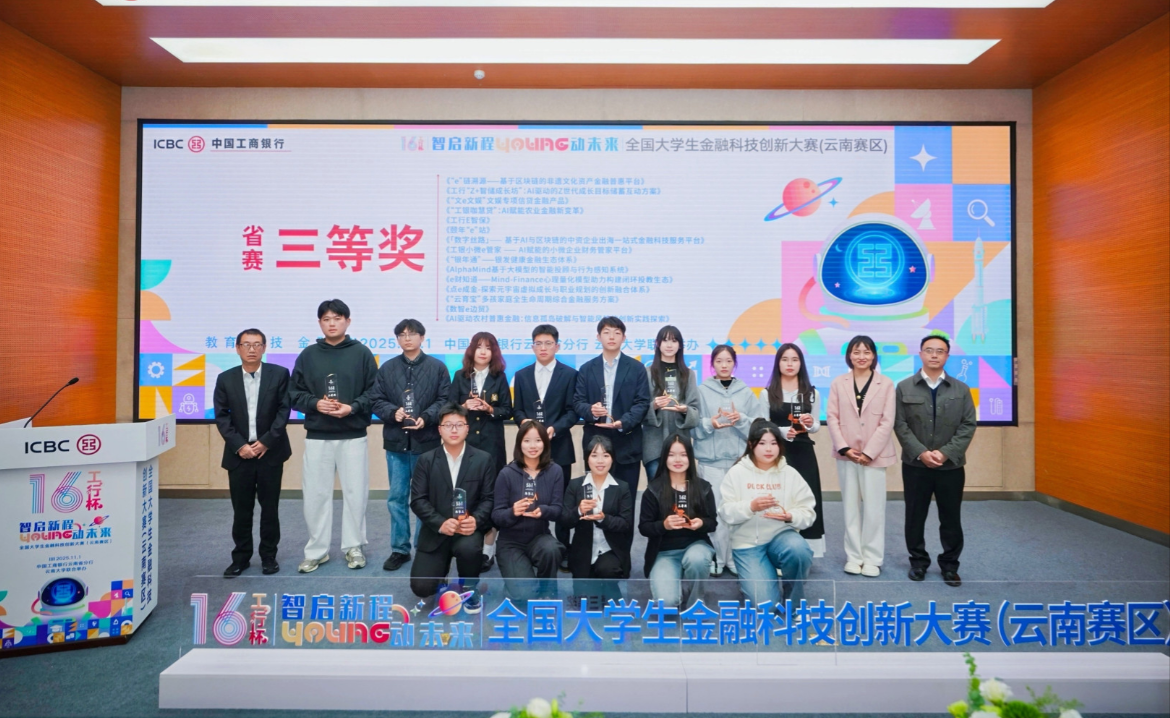 2025年11月1日,第十六届“工行杯”全国大学生金融科技创新大赛云南赛区选拔赛决赛在云南大学举行。本次选拔赛以“智启新程,Young动未来”为主题,是“工行杯”全国大学生金融科技创新大赛在云南省设立省级赛区后举办的首次大赛,具有里程碑意义。大赛得到了省内高校的积极响应和广泛参与,共有来自云南大学、云南民族大学、云南财经大学、昆明理工大学、云南农业大学等13所高校的306支优秀团队报名参赛。经选拔,来自云南民族大学、云南农业大学、滇池学院和云南大学的15支优秀团队入围现场决赛角逐一、二等奖,15支三等奖团队及各高校代表两百余人参与现场决赛。