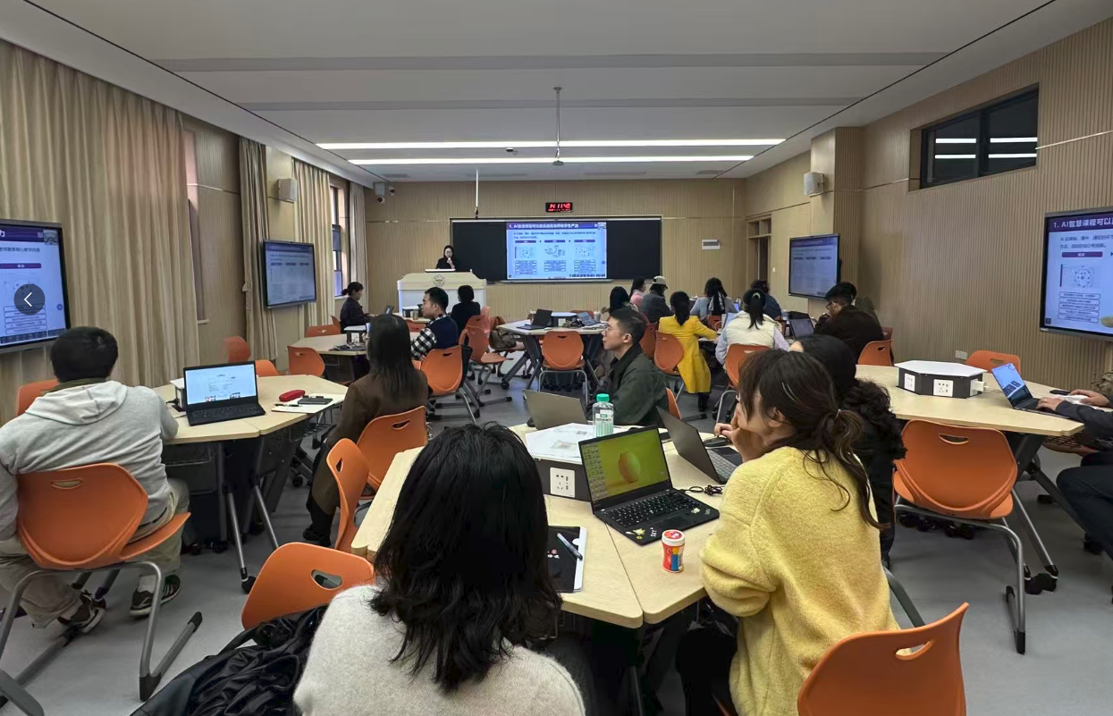 在讲解之后,各位老师开始实操学校的智慧教学平台和雨课堂智慧教学工具。通过对AI提示词编辑、教案生成、随机出题、分组讨论和AI评分等功能的运用,老师们感受到了智慧教学平台“既有技术高度,又具操作温度”,为自身教学改革提供了极具价值的参考。多位教师对智慧教学平台简化工作流程、深化互动方面的作用表示高度认可。