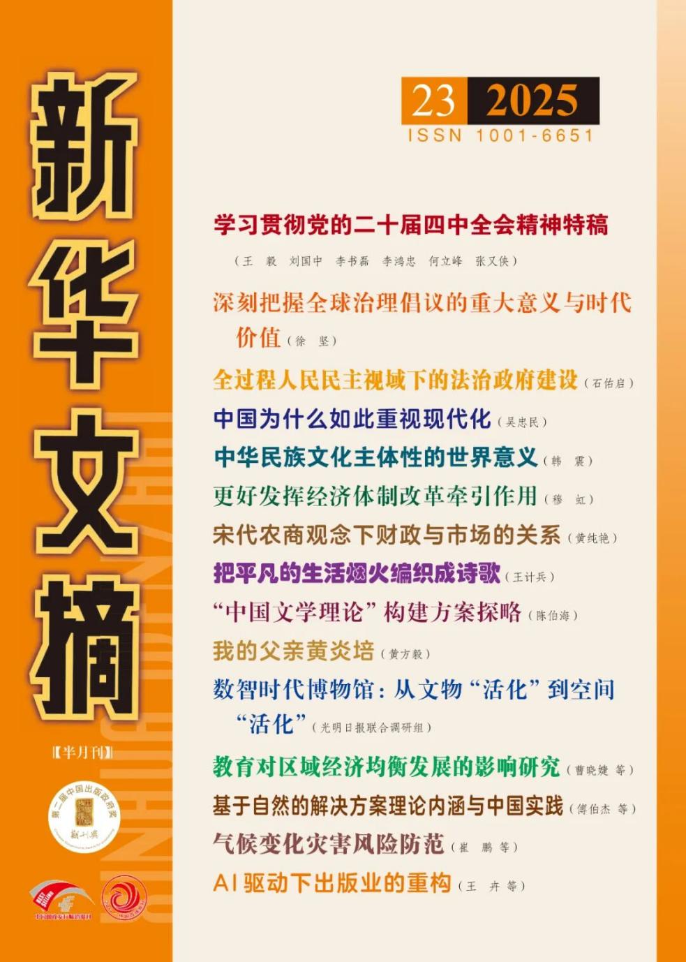 近日,《新华文摘》2025年第23期全文转载了云南大学经济学院张国胜团队论文《促进针对性的可携带投资:加快农业转移人口市民化的一个新思路》,该文原发表于《中国农村经济》2025年第9期。