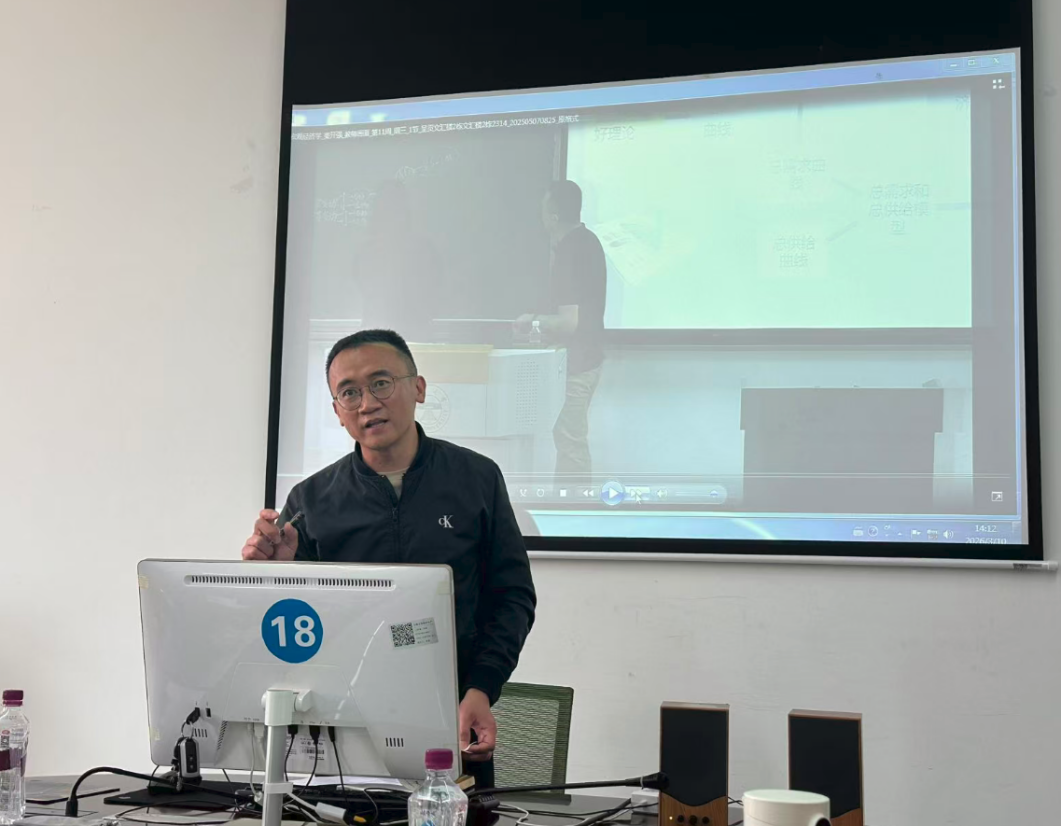 研讨会重点围绕教学创新、课程建设及质量提升等核心议题展开。研讨会第一阶段为教学示范环节。李顺洪、秦开强、邵素军三位教师代表先后进行教学示范,分别从教学组织设计、现代教学手段的运用、多类型教学资源整合以及课程思政元素的有机融入等不同维度,结合自身教学实践,分享教学经验与心得。三位教师代表了宏观经济学课程组老中青相结合的人才梯队结构,他们的教学示范展现了资深教师的深厚积淀、中年骨干的中坚力量和青年教师的创新活力,为与会教师提供了多维度的教学参考。