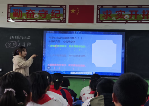 在教学深耕,以笃行诠释匠心。教育教学是支教工作的核心,也是经院人严谨治学态度的延伸。根据学校教学安排,第一学期我负责六年级两个班的科学教学,第二学期新增四年级2班的科学教学任务。秉持“以学生为本”的理念,我始终全身心投入,既关注学业水平,更重视道德教育与心理健康。面对四年级学生基础知识参差不齐的现状,母校培养的系统思维让我学会梳理教学逻辑,在备课中融入分层教学思路,结合年龄特点与认知水平设计基础巩固、能力提升等梯度内容,如今大部分学生已能主动开展深度思考。而对于面临升学的六年级学生,我提前梳理小学阶段知识体系,将零散知识点串联成网,广泛收集小升初真题设计专题训练,同时利用课余时间谈心疏导,用耐心缓解他们的升学焦虑,将方法与温度融入每一个教学环节。